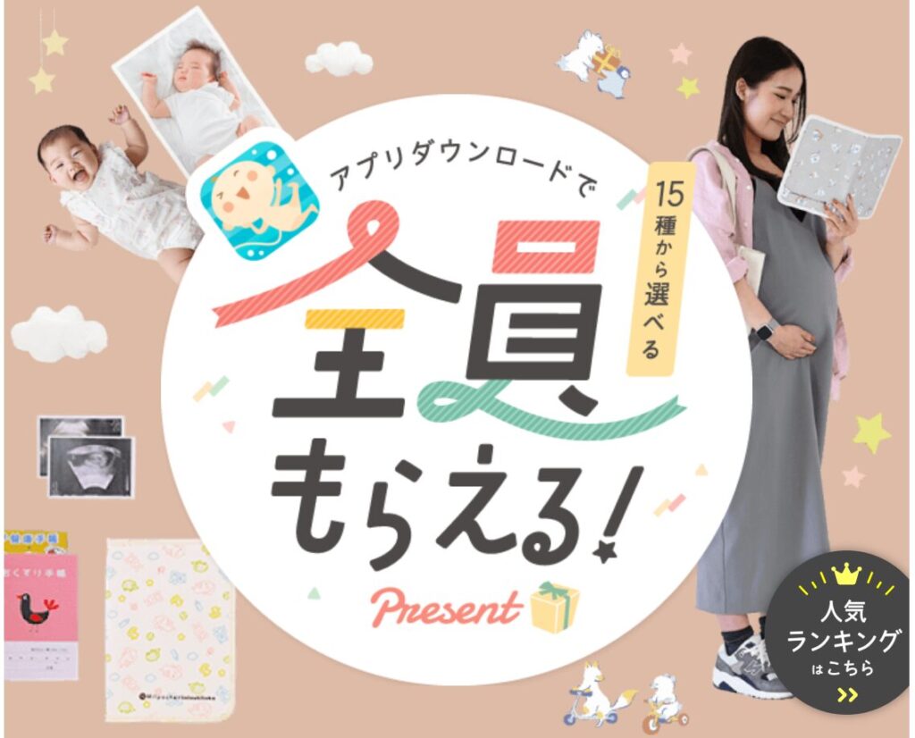 トツキトオカは、妊娠記録アプリをダウンロードして登録するだけで、妊婦さん限定のプレゼントを全員もらえるキャンペーンを実施しています。