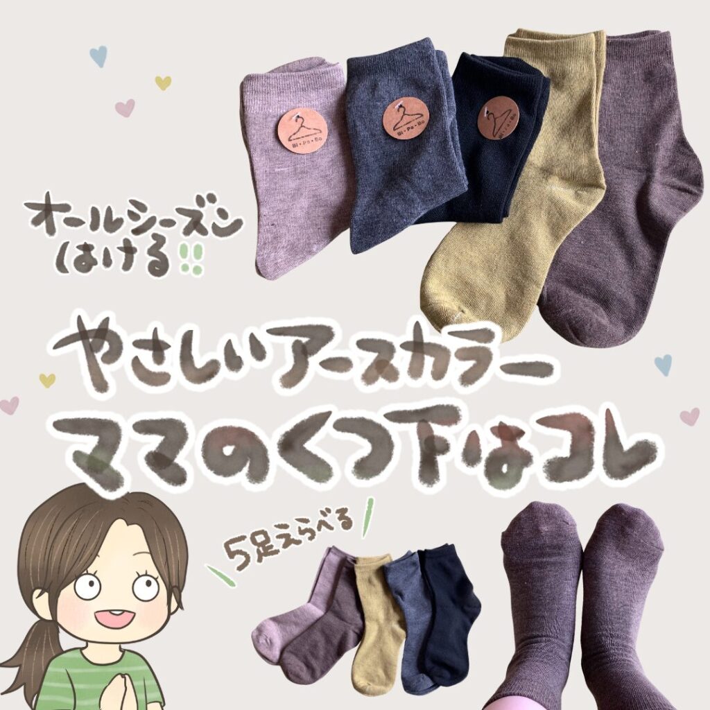 靴下(ママ用) | 脱げにくく、毛玉が出にくい。スニーカーと相性抜群。 |