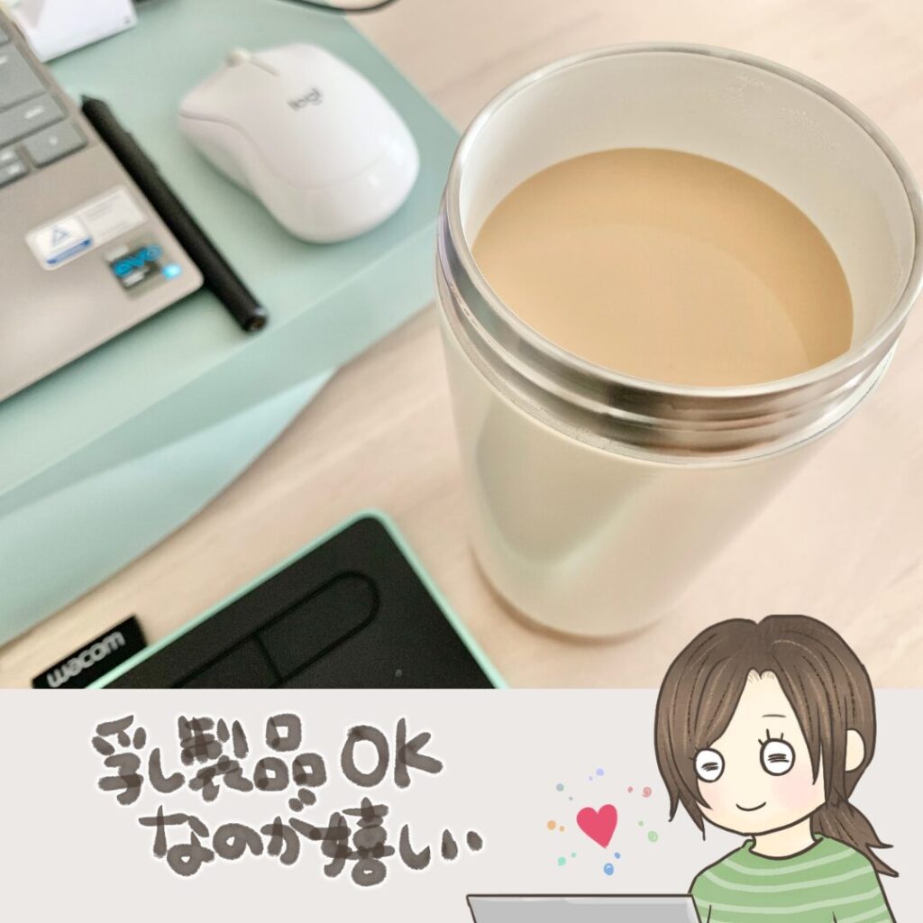セラミックコーティングなのでスポーツドリンクや乳製品が入れられるのが便利。