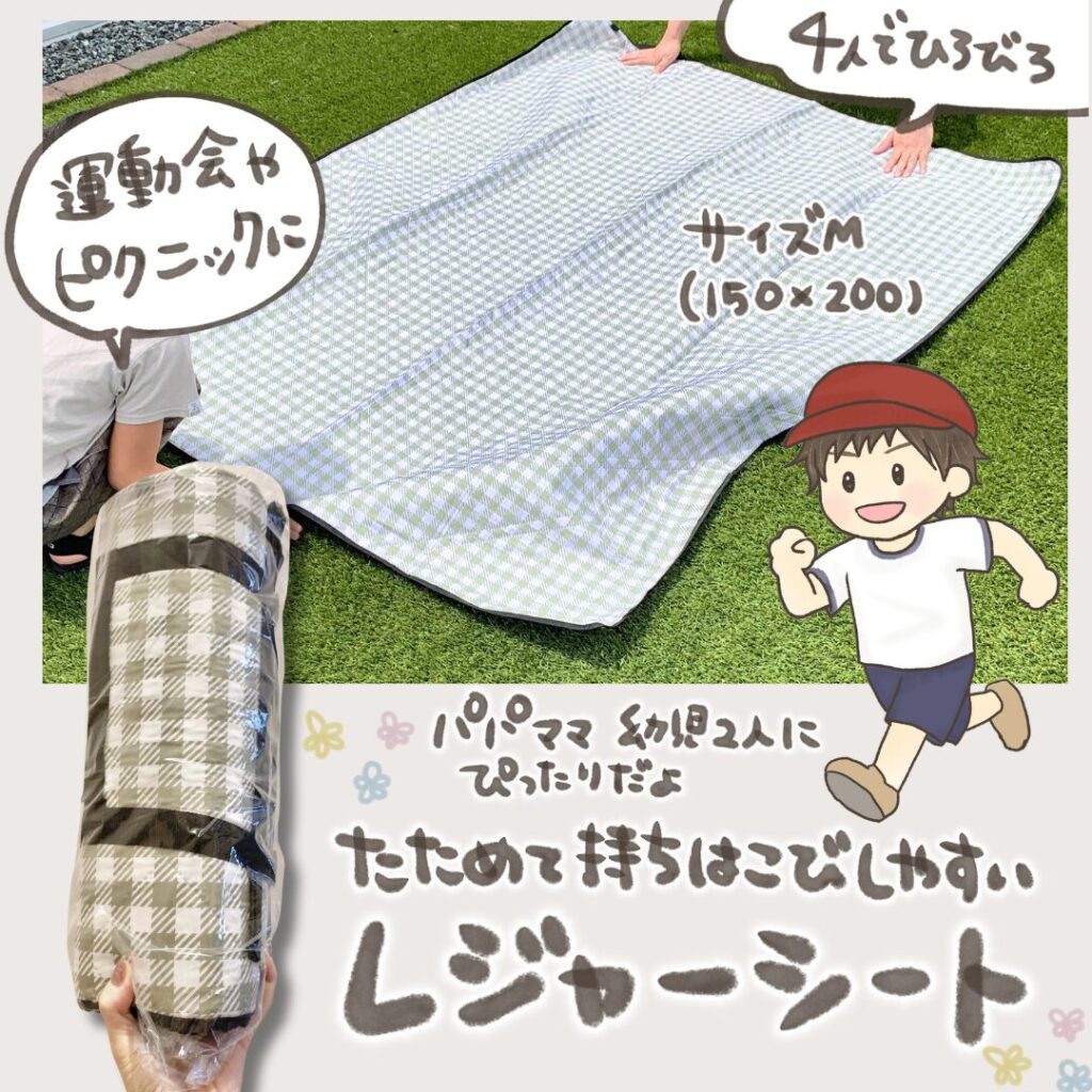 レジャーシート | 厚手タイプでおしりが痛くなりにくい。家族全員が座れる広さ。 |