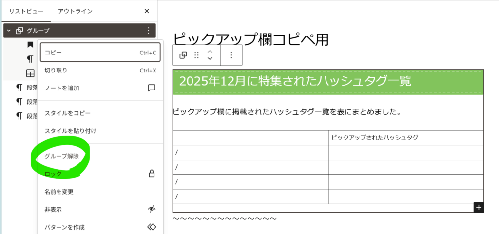 この状態だと、表ブロックを含んだコピーが正しく機能しないことがあるようです。