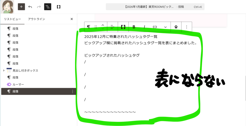 WordPressのブロックエディタを使っていてこんなトラブルに遭遇しました。