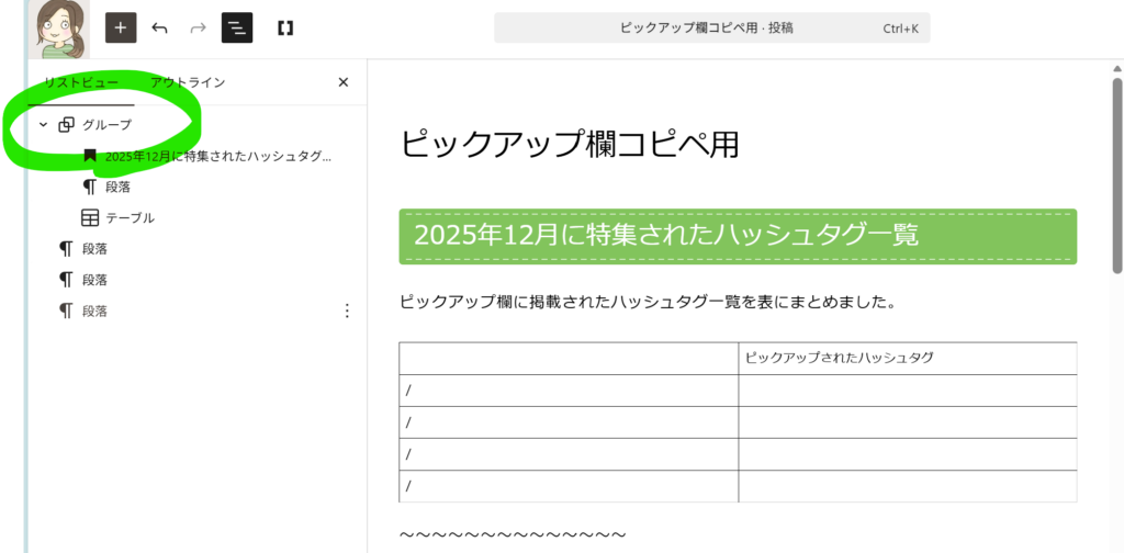 表がグループブロックに入っていないかをチェックしてみましょう!